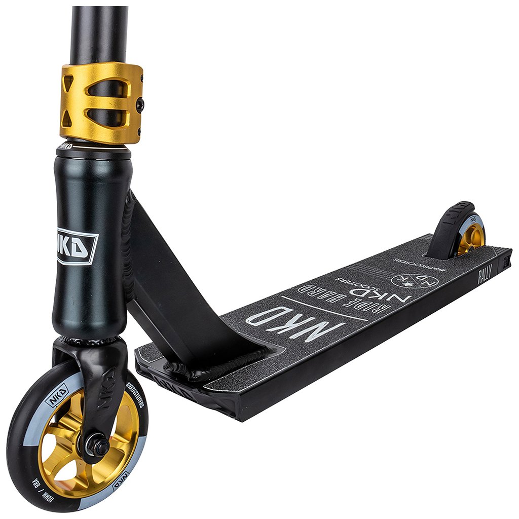 Készen állsz arra, hogy elragadtasd magad? Az NKD Rally V4 robogó itt van, hogy bevegye az utcákat és a rámpákat. Az erő és a könnyedség keveréke. Krómozott sínekkel és széles alumínium lemezzel rendelkezik. Az anyagok egy dolog, de mi lenne a kifinomult konstrukció nélkül? Az új technológia és a nagyszerű ötletek segítségével ez a freestyle robogót úgy tervezték, hogy mindent szétzúzzon, ami az útjába kerül! Kezdjük a kiváló minőségű HIC kompressziós rendszerrel, amely lehetővé teszi a sima barspinelést. Nem is beszélve a robogó nyakáról és az NKD Signature acélvilláról, amely még erősebbé teszi a robogó felépítését. Végül, de nem utolsósorban megemlíteni a gyönyörű gyémánt markolatokat, amelyek szintén szuper kényelmesek. Ez a freestyle robogó az erő és a teljesítményről szól. Ha megbízható robogót keresel - ez tökéletes neked!