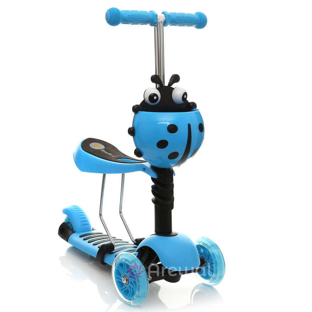 Gyerek roller 3in1 LADYBUG villágító LED világító kerekekkel és katicabogár alakú kosárral - aranyos közlekedés aranyos közlekedési eszköz a legkisebbek számára!