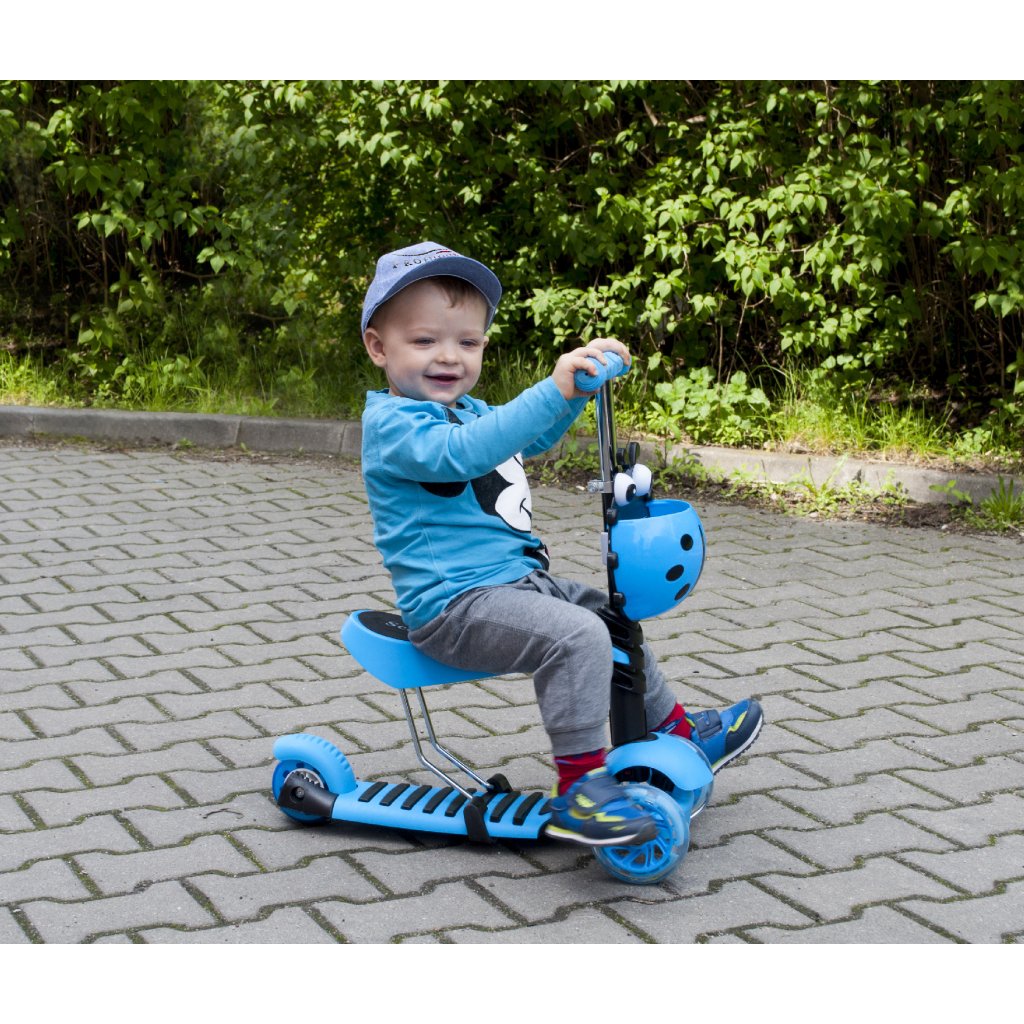 A háromkerekű gyermekrobogó nagyszerű választás a gyermekek motoros készségeinek fejlesztéséhez. Nem kell, hogy aggódjon, hogy néhány hónap múlva gyermeke kinövi ezt a robogót. A levehető ülésnek, a széles lábtartónak és a állítható magasságú kormány, ez a robogó hosszú ideig stílusos társ lesz. A mellékelt ülés, robogóként is szolgálhat. Ezenkívül a robogó LED-es világító kerekekkel rendelkezik, és lehetőség van a következőkre egy vezetőrúd felszereléséhez és a robogó teljes irányításához.